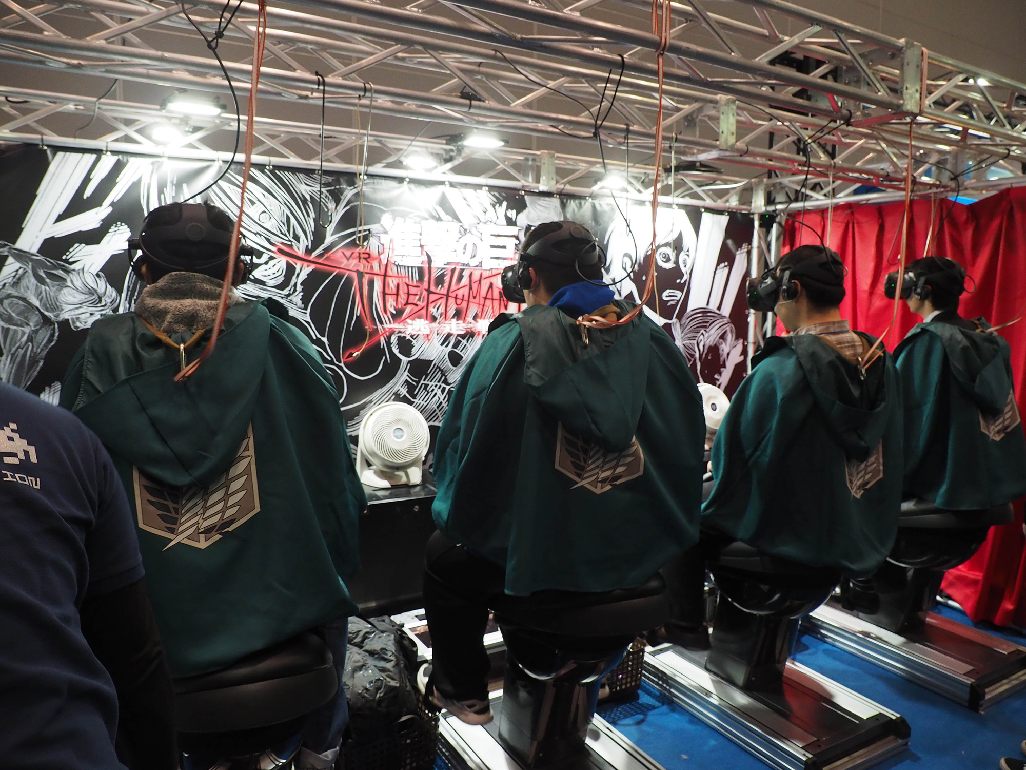 PH15 Published 2019年2月4日 at 2000 × 1500 in 【World MR News】アミューズメント施設で人気のVR系コンテンツも多数出展! 「ジャパン アミューズメント エキスポ2019」をレポート ← Previous Next → 4人で同時プレイ出来る『進撃の巨人 THE HUMMAN RACE』。この日はビジネスデーではあったが、40~50分待ちと盛況だった。