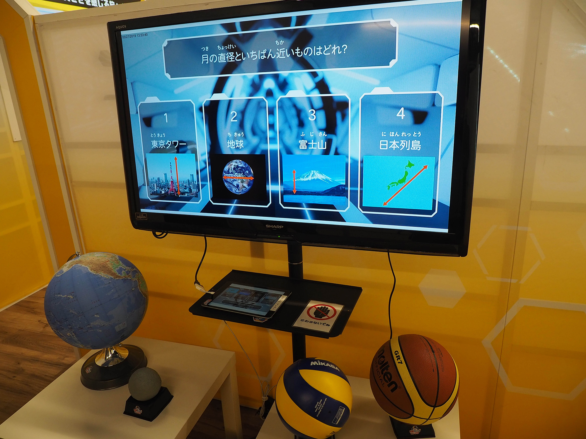 PH05 Published 2019年3月29日 at 2000 × 1500 in 【World MR News】宇宙の様々なふしぎをVRで学べるワークショップ「月面キッズキャンプ」がよみうりランドで開催 ← Previous Next → VR体験後は、補足説明と最初に出題されたクイズの答え、豆知識などが学べる動画が見られる。また、ボールで他の星との大きさの比較も行えるようになっている。