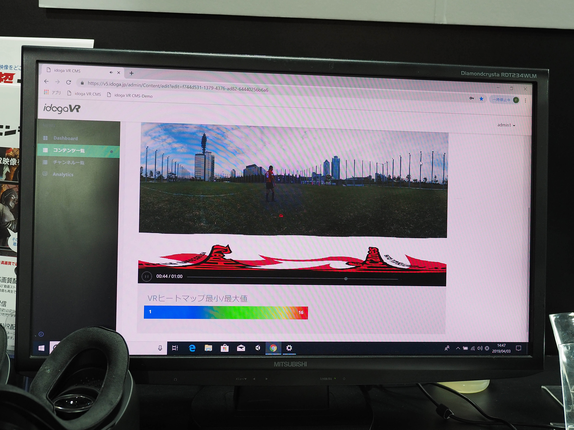 PH15 Published 2019年4月9日 at 2000 × 1500 in 【World MR News】立体音響から同時プレイVR、話題のホログラムディスプレイも登場――「コンテンツ東京 2019」レポートその① ← Previous Next → 『idogaV5+パノラマ超エンジン』でヒートマップを表示しているところ。