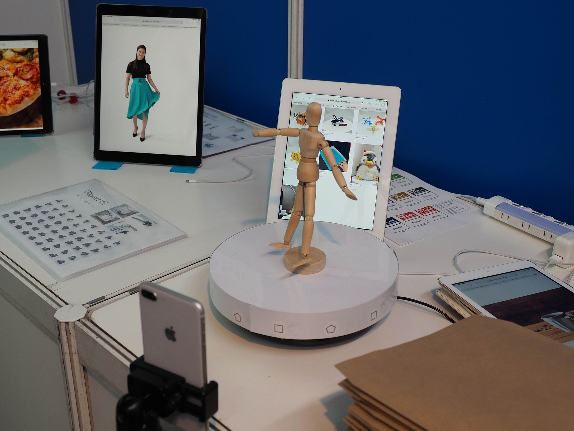 PH05 Published 2019年4月11日 at 2000 × 1500 in 【World MR News】低価格スマホ最適化VRや簡単VR作成ツールなど様々なサービスが登場――「コンテンツ東京 2019」レポートその③ ← Previous Next → 奥のタブレットは、スタジオで24台のカメラを使用して撮影された360度の写真である。手前は、『スマホでグルック』のデモだ。