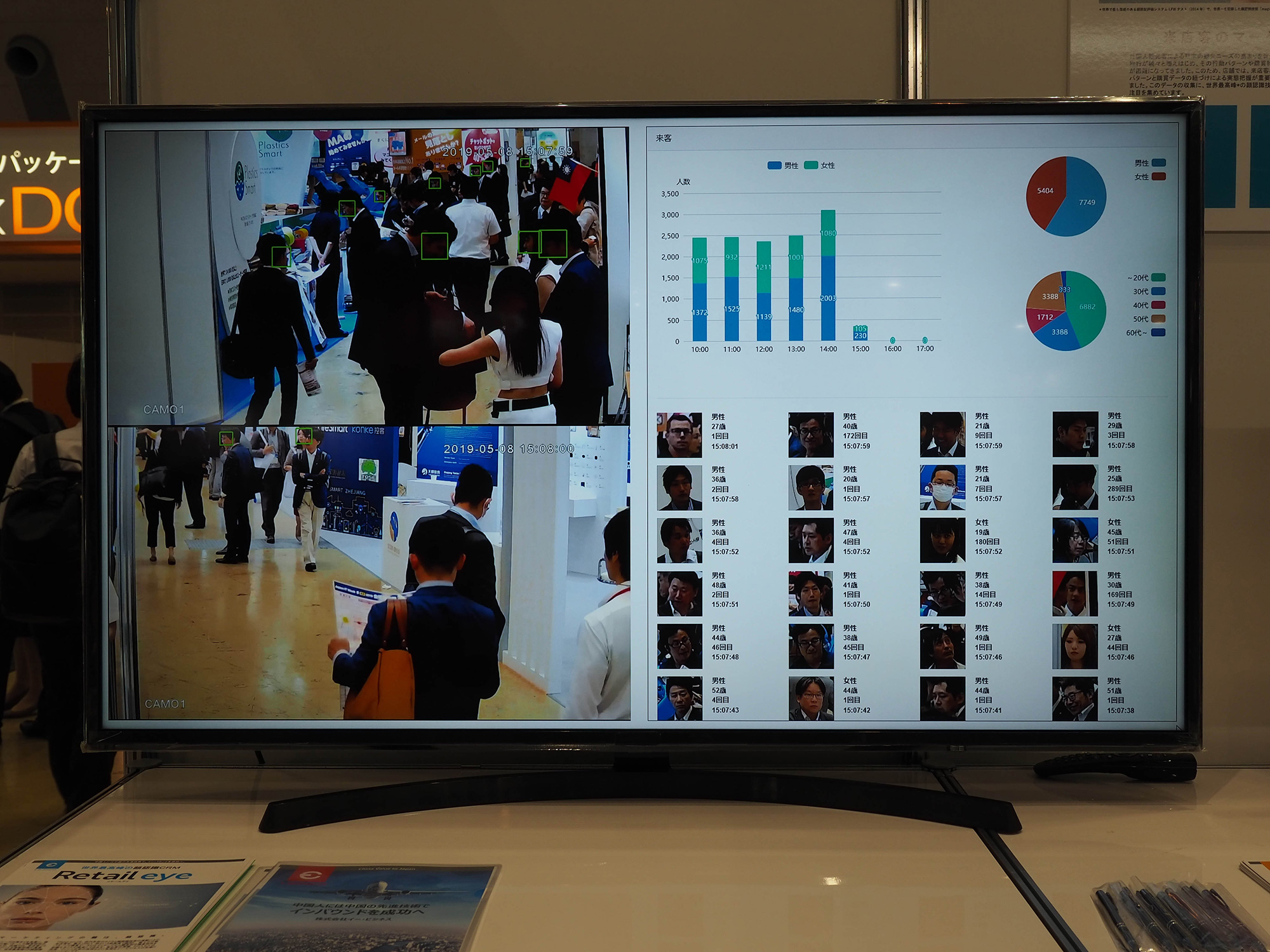 PH17 Published 2019年5月14日 at 2000 × 1500 in 【World MR News】遠隔支援サービスから脳波分析、家電のスマートホーム化まで! 日本最大のIT展示会「第28回 Japan IT Week 春」をレポート ← Previous Next → ▲こちらは顔認証システムCRM『Retail eye』。グラフで統計データも見られる。