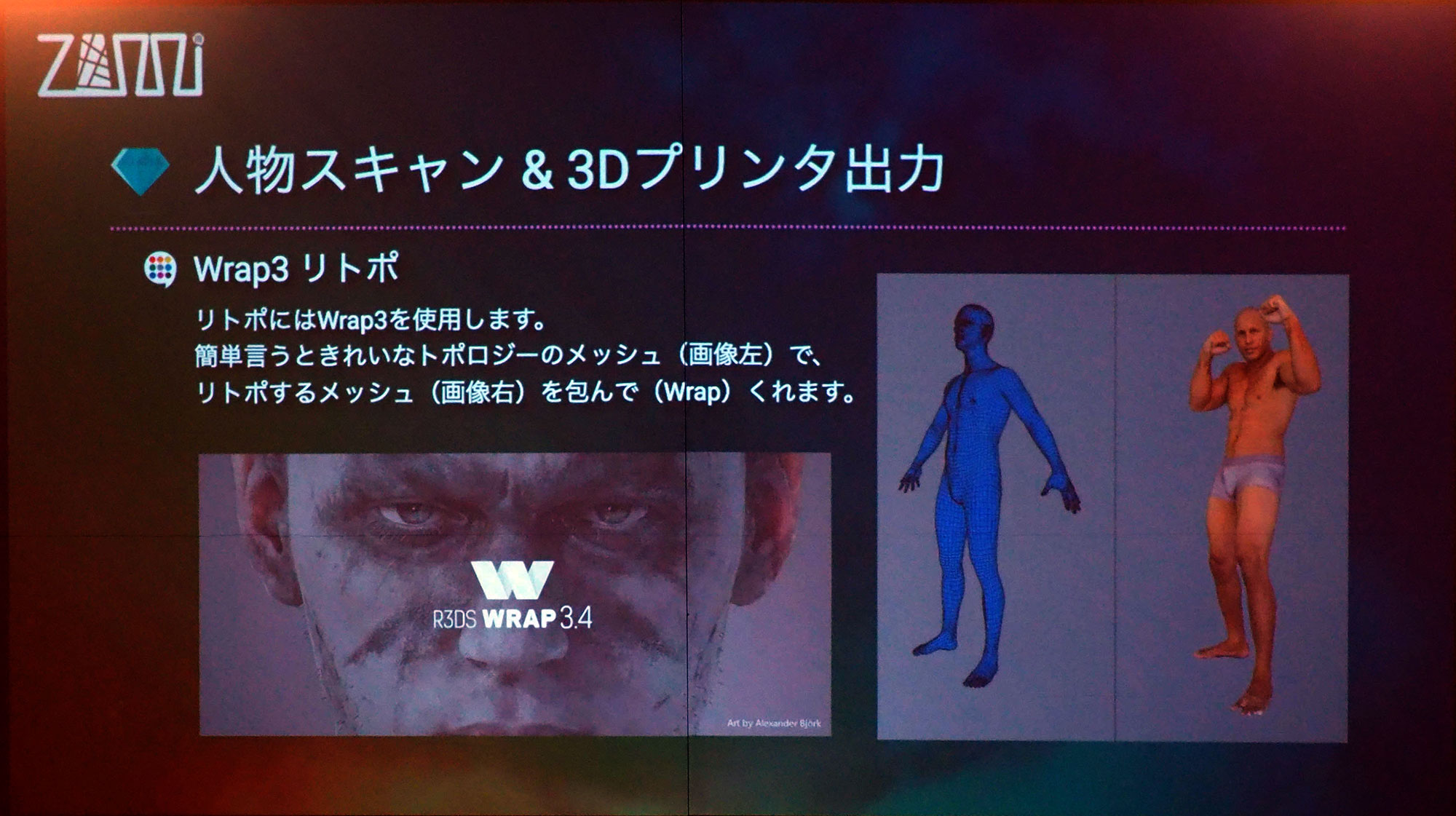 PH12 Published 2019年8月21日 at 2000 × 1121 in 【World MR News】フォトグラメトリは写真や動画に続く新たなメディアになる【Photogrammetry Meetup vol.1】① ← Previous Next → ▲出力した.objファイルは、『Wrap3』というソフトを使ってリトポする。このソフトは、イメージで言うとラッピングしてくれるようなものだ。